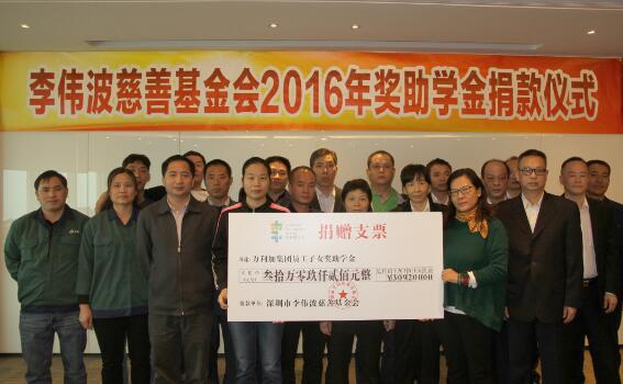 12月23日上午,李伟波慈善基金会2016年度奖助学金捐款仪式在集团总部举行。共有24名集团员工子女获得了30余万元奖助学金。