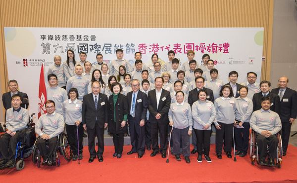 晚上7点,香港劳工及福利局局长张建宗先生向代表团成员授予旗帜,祝愿香港代表团旗开得胜,鼓励参赛选手以努力换取比赛佳绩,让社会大众加深认识残障人士的才华。李伟波慈善基金会于去年7月捐款50万港币赞助了第9届香港展能节,以关爱残障人士,加强社会对残障人士的了解。活动吸引近400名参赛者,涵盖了不同年龄和残疾类别,最终选出了这30名精英选手,代表香港参加即将于法国波尔多举行的第九届国际展能节。